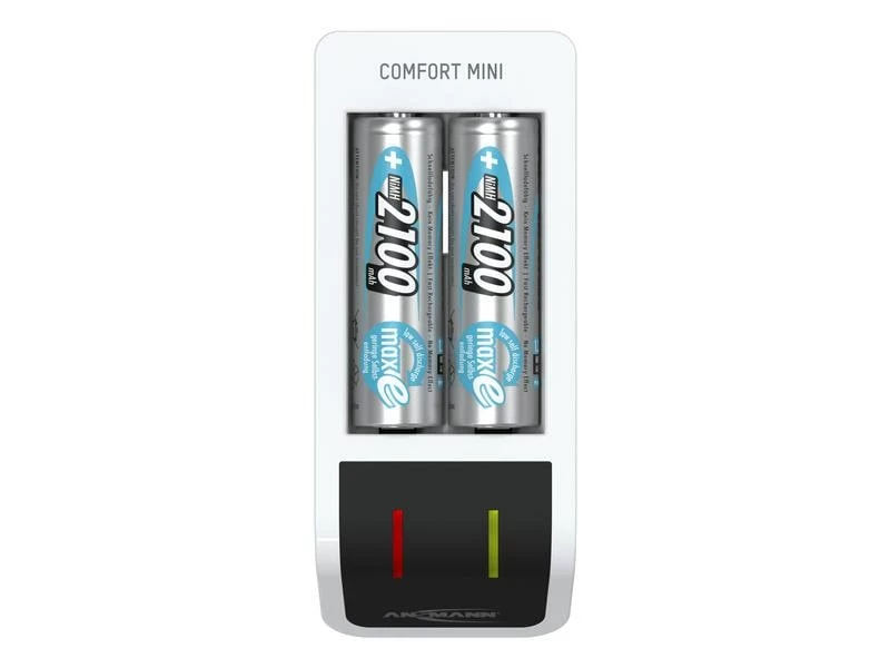 Das Ansmann Comfort Mini+ 2x AA 2100 mAhkombiniert die Funktionen eines universellen Ladegerätes mit jener einer professionellen Teststation. Das intelligente Schnellladegerät kann bis zu zwei AA- oder AAA-Akkus laden und testen. Das Ladegerät versorgen Sie über einen normalen Netzanschluss.
